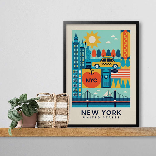 New York, United States – Retro Illustrated UK Travel Wall Art Print